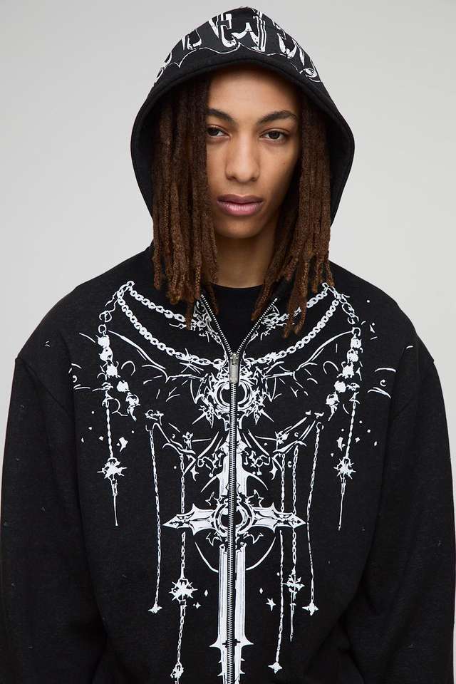 Conception avant de qualité supérieure hommes coton lourd impression Streetwear fermeture éclair sweats à capuche unisexe épaule tombante