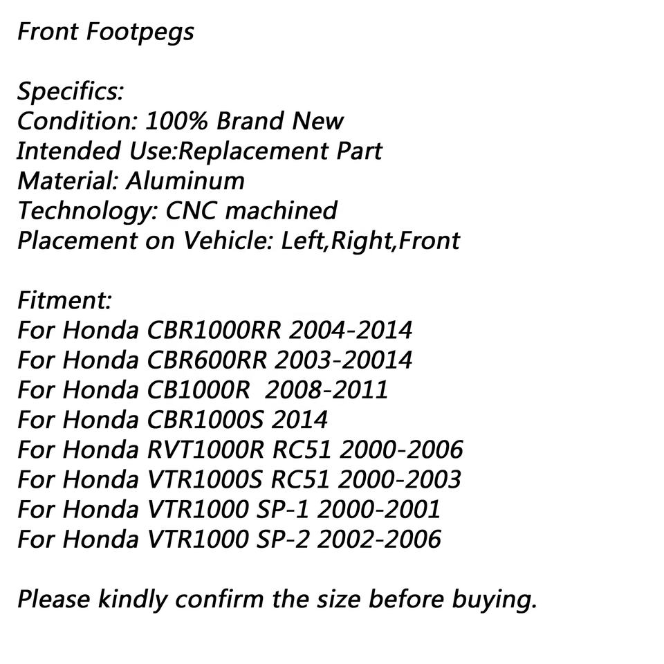 Repose-pieds avant en acier inoxydable pour Honda CB1000R, CBR 600 RR, CBR1000RR, VTR1000, VTR1000S