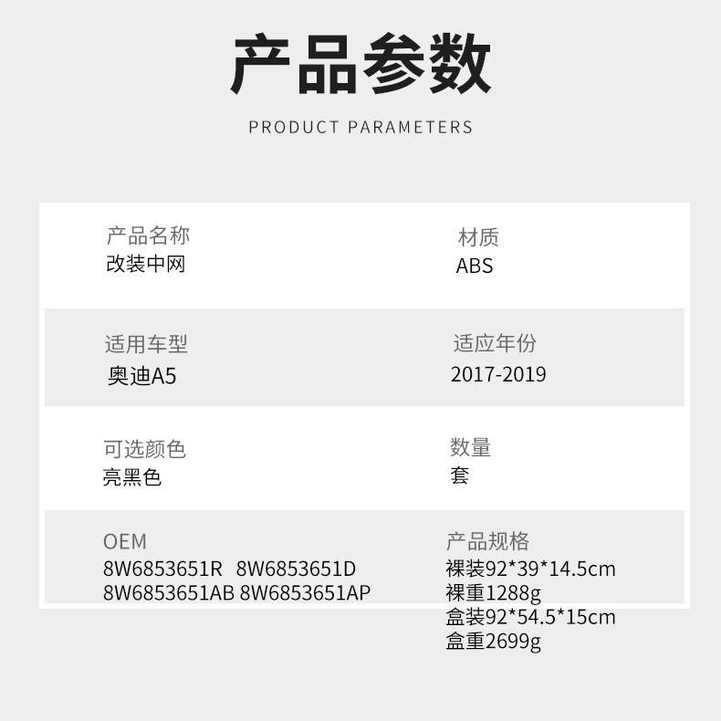 Calandre avant pour Audi A5 2017-2019 style RS, grille nid d'abeille en PC, compatible pare-chocs