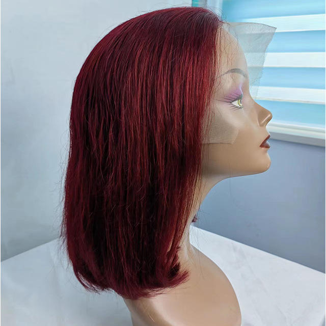 Perruques de cheveux humains courts à lacet frontal 13*4 couleur vin rouge 180% perruque de cheveux synthétiques vierges bruts de dentisterie pour femmes