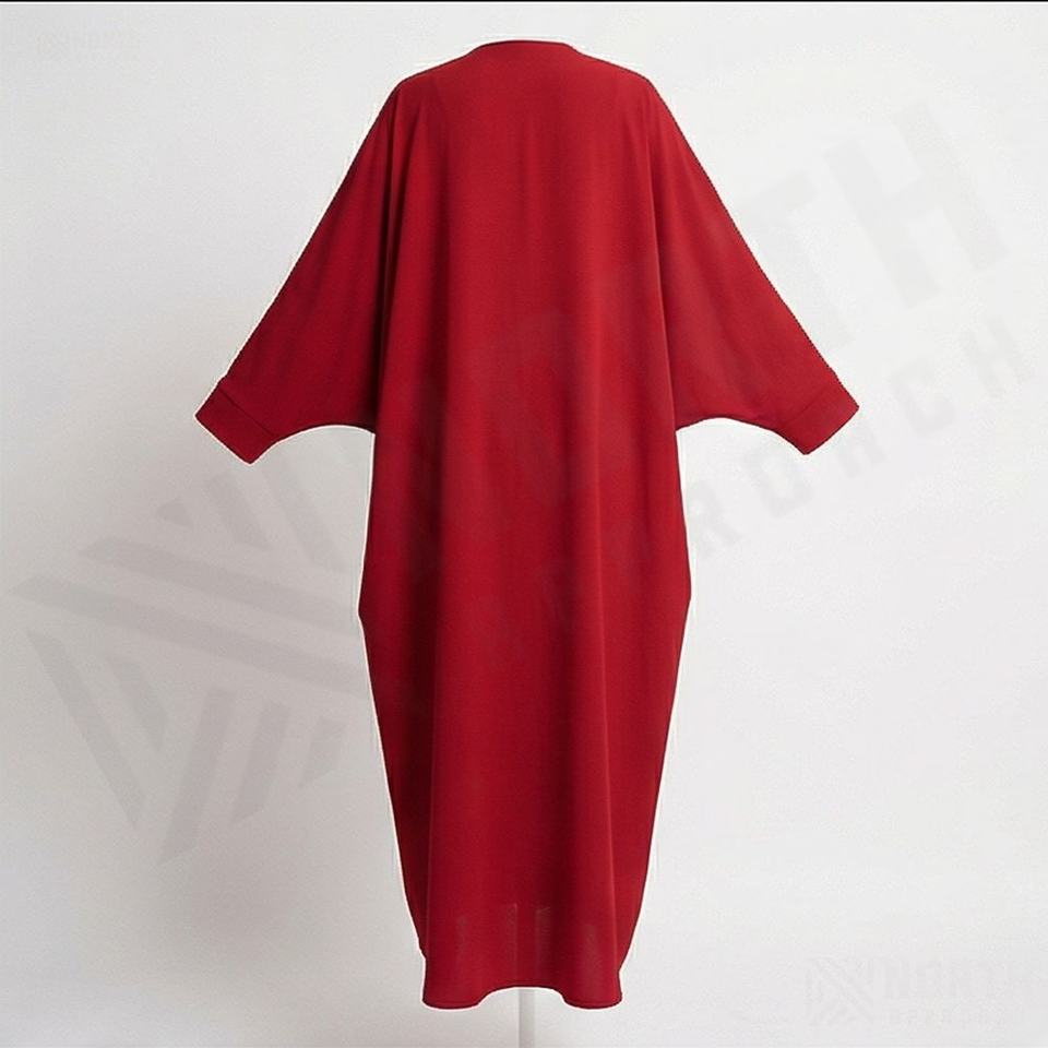 Abaya islamique légère de haute qualité à col en V ouvert sur le devant, manches longues, longueur cheville, avec couleur personnalisée et motif papillon