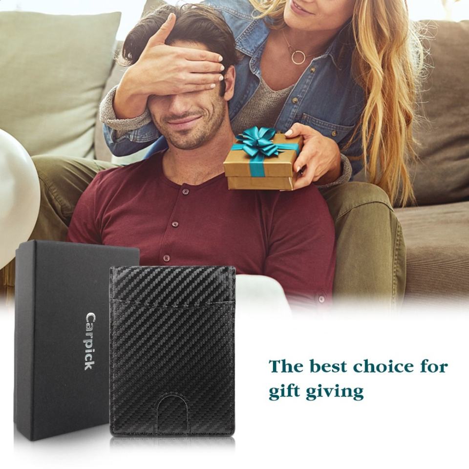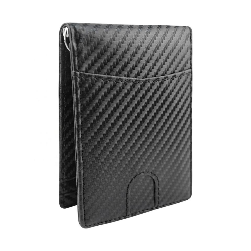 Porte-cartes de crédit bifold fin pour homme avec fermeture frontale, blocage RFID, doublure en polyester et pince à billets en cuir