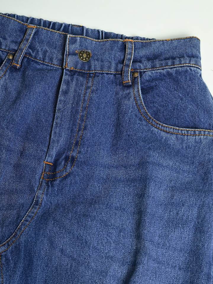 Jupe midi décontractée en jean délavé à taille haute, coupe trapèze, avec fente avant