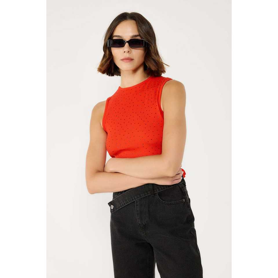 T-shirt à lacets à l'arrière avec détails en dentelle ornée de pierres sur le devant