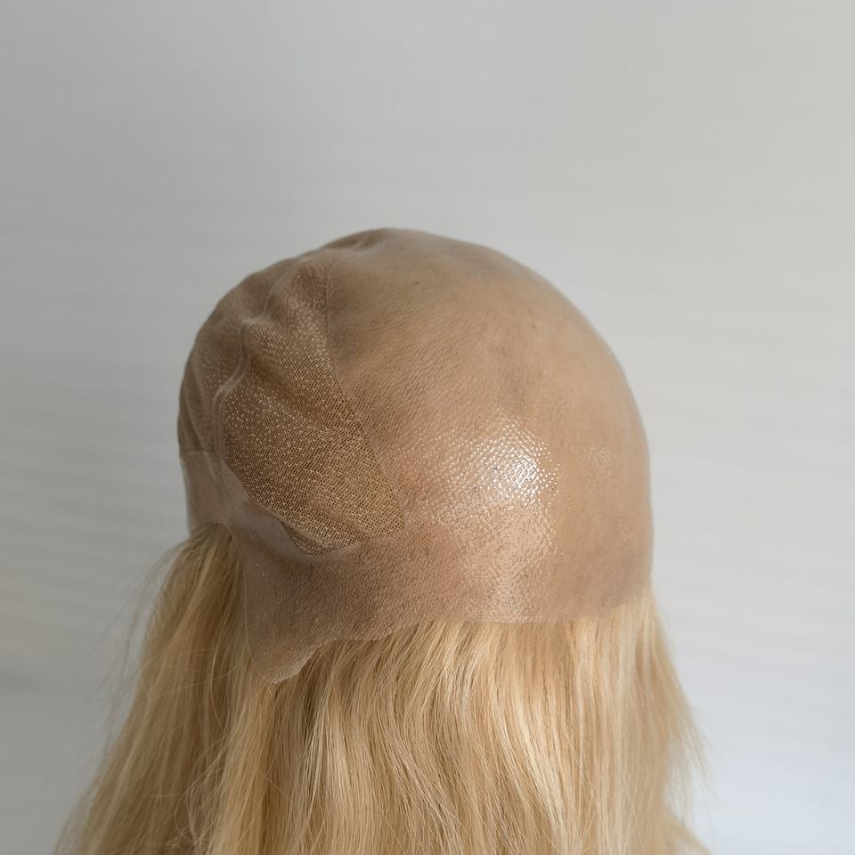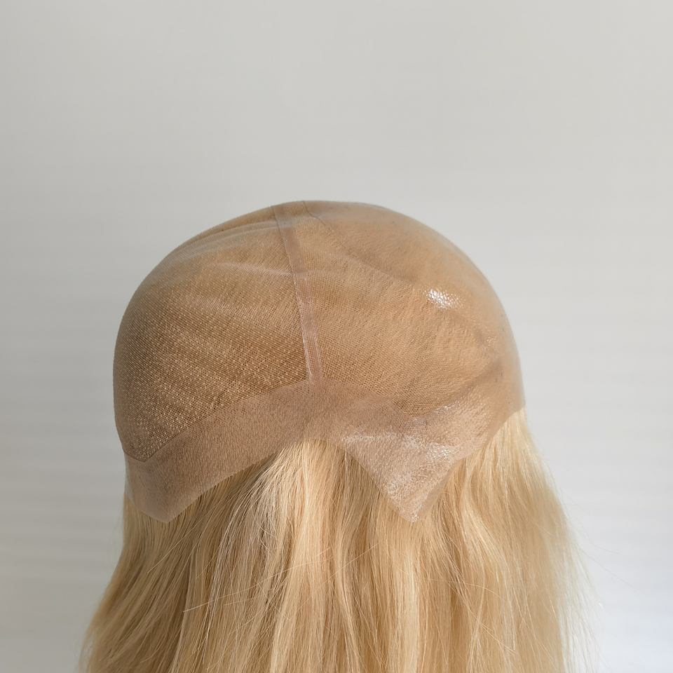 Avant traduire mince PU peau base cheveux élégants péruviens vrais cheveux humains vierges perruque pleine casquette