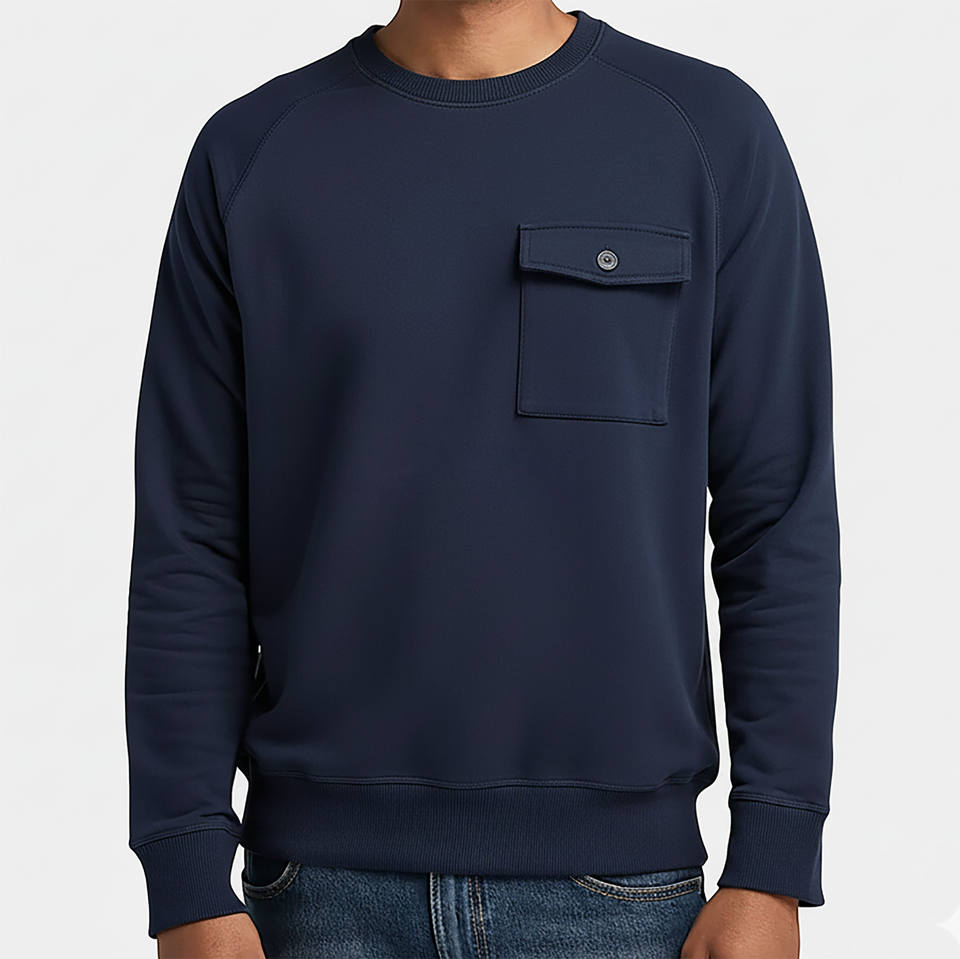 Sweat-shirt à col rond pour homme, style poche avant, haute qualité, molleton de coton lourd, impression personnalisée avec logo brodé, style hip-hop.