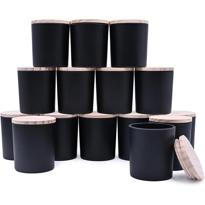 Pot à bougie givré avec couvercle, noir mat et blanc, 10 oz