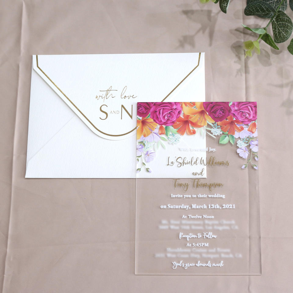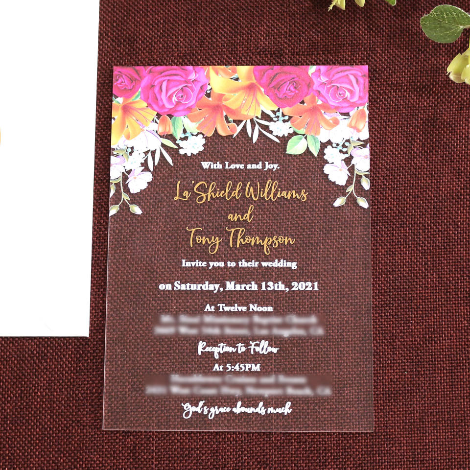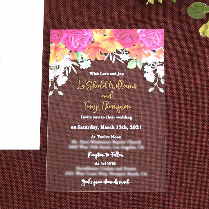 Acrylique givré nouvelles idées personnalisé fantaisie Floral aquarelle carte d'invitation de mariage