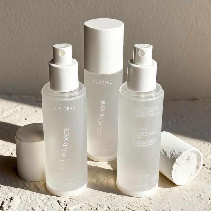 Emballage de flacon de soin de la peau personnalisé givré, luxe, 50 ml, 100 ml, flacon pompe sans air en plastique pour soin de la peau