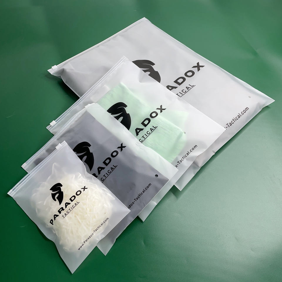 Frosted Matte Black/Beige/ Brown Ziplock Bags with Customized Glossy Black logo for Garment Plastic Zipper Bag with Slider