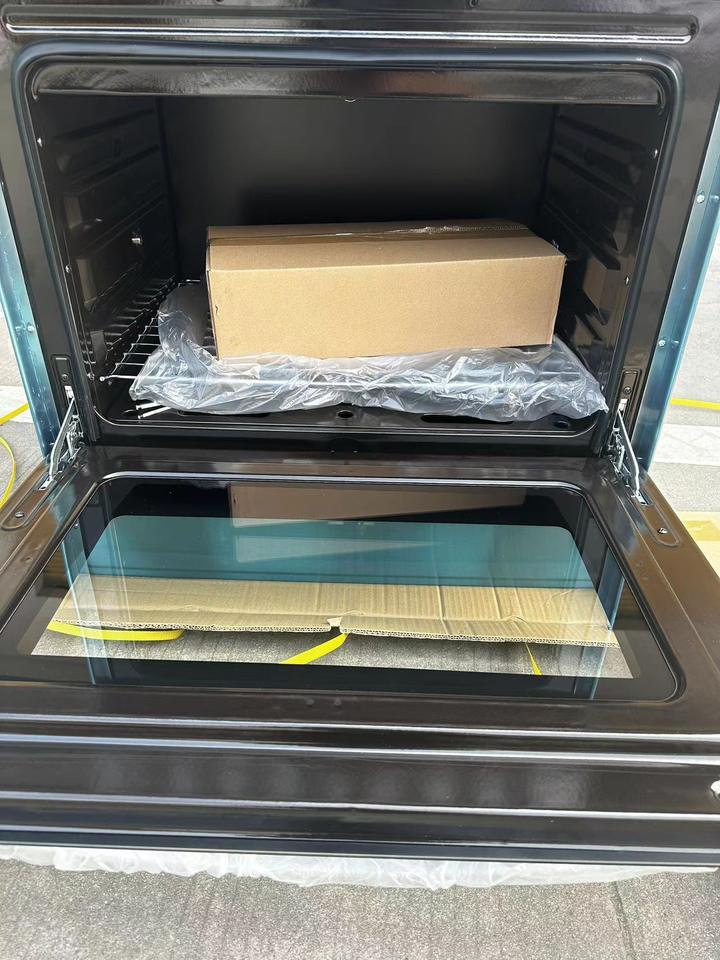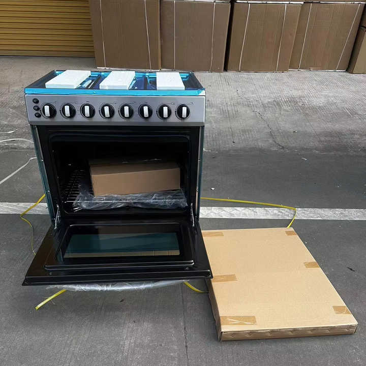Cuisinière électrique et à gaz à 6 brûleurs avec four, en acier inoxydable givré, autoportante, 120 L, rangées de brûleurs supérieures/inférieures