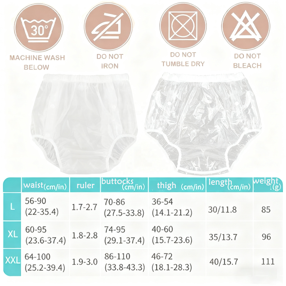 Couches lavables pour adultes en TPU transparent givré, bouton réutilisable, pantalon en plastique pour adultes, imperméable, lavable, pour la protection contre l'incontinence