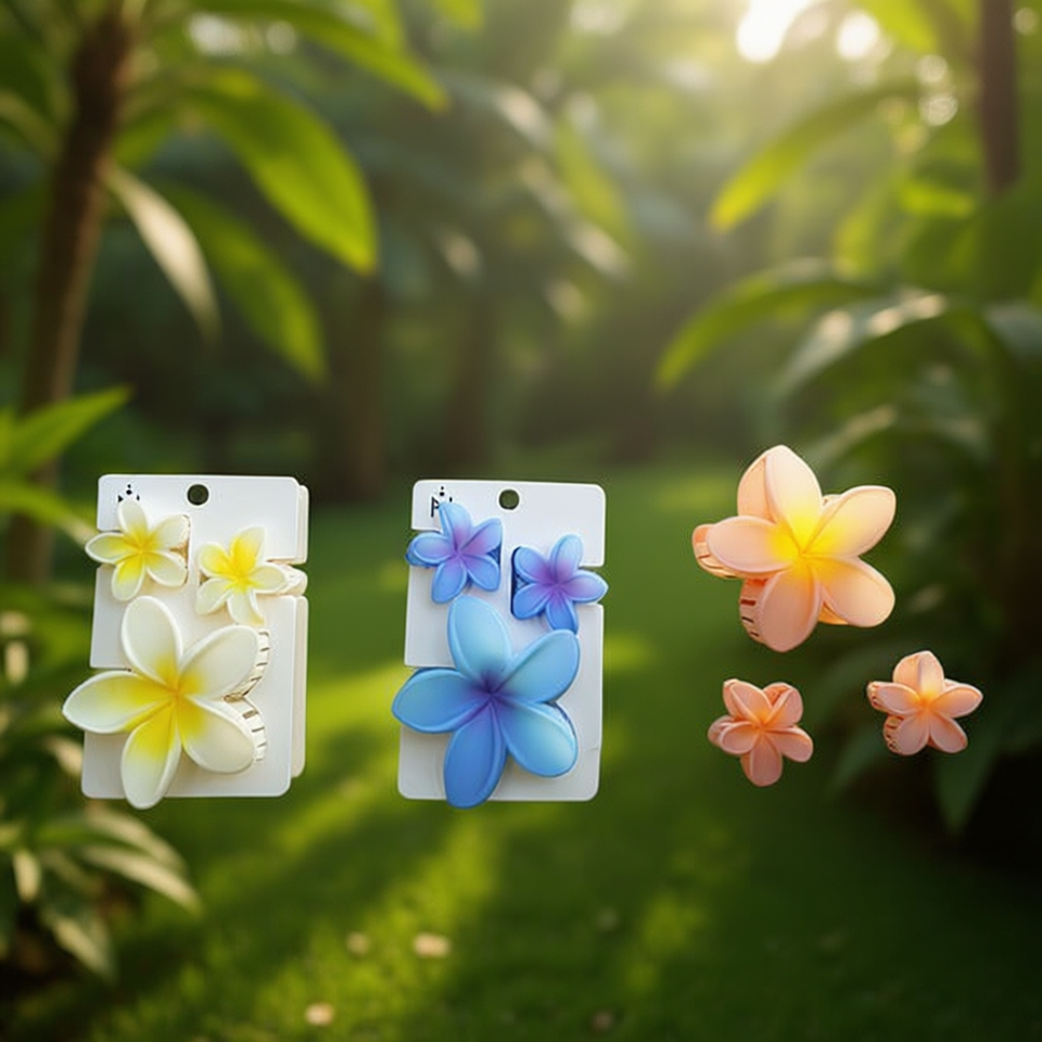 Pinces à cheveux frangipanier bicolores givrées, lot de trois pièces, 2 par couleur
