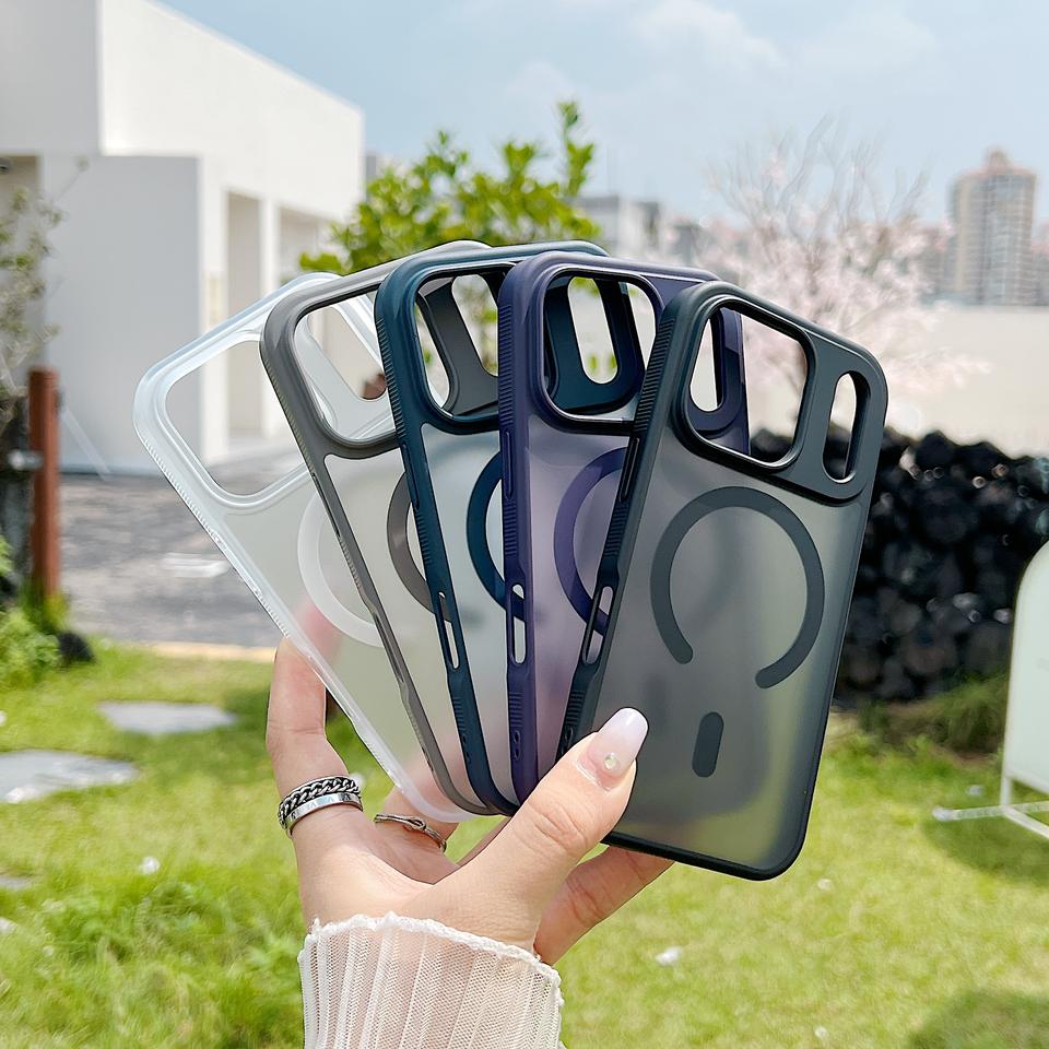 Glaçage Peau Tactile Sans Fil Charge Téléphone étui pour iphone Air 17 Pro Max Forte Magnétique TPU + Acrylique Orange Couverture Transparente