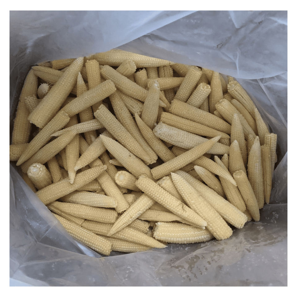 Maïs bébé surgelé IQF, fabriqué à partir de jeunes épis de maïs, idéal pour les plats sautés, les salades et les recettes de cuisine asiatique du Vietnam.