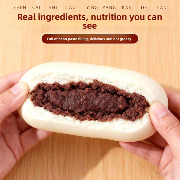 Bun au haricot rouge surgelé avec garniture de haricot rouge, farine riche en gluten, OEM, pâte fermentée, style commercial Heilongjiang