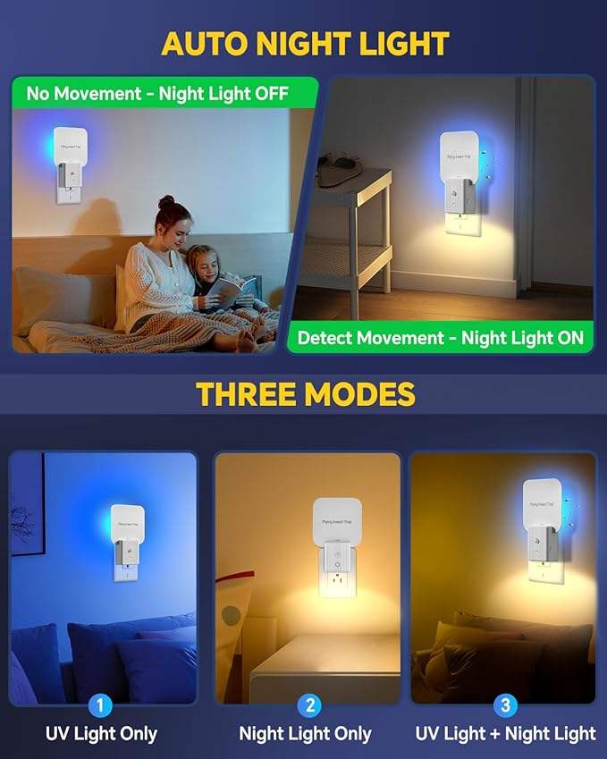 Pièges à mouches des fruits pour l'intérieur - Piège 2-en-1 avec veilleuse automatique et lumière anti-insectes pour moustiques