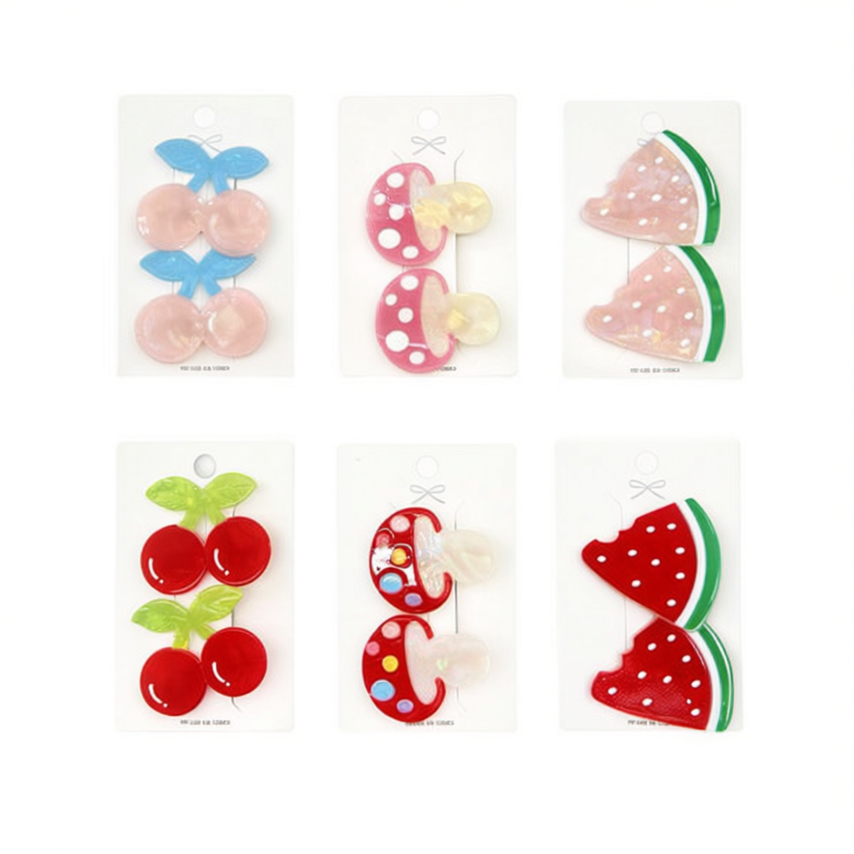 Ensemble de pinces à cheveux en forme de fruits avec motif cerise et pastèque pour enfants et filles, 1200 pièces par boîte