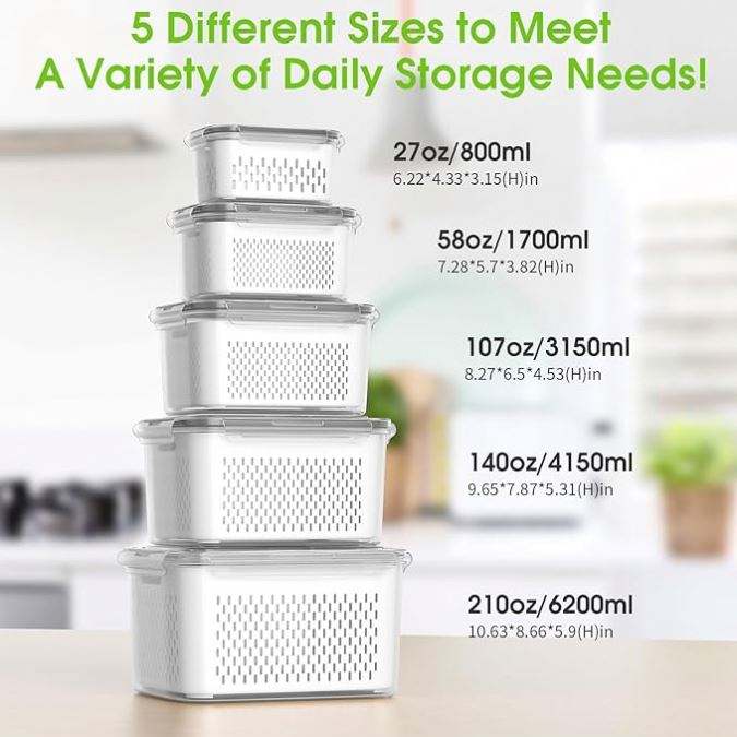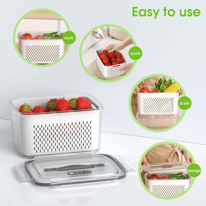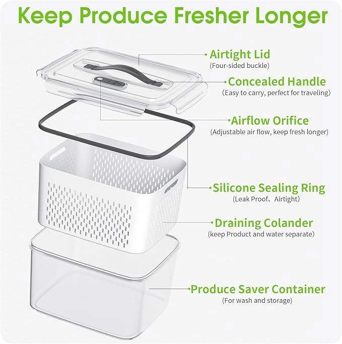 Contenants de rangement pour fruits en plastique avec passoire et poignée pour organisateurs de réfrigérateur, boîtes à laitue transparentes avec couvercles, capacité 3-6L