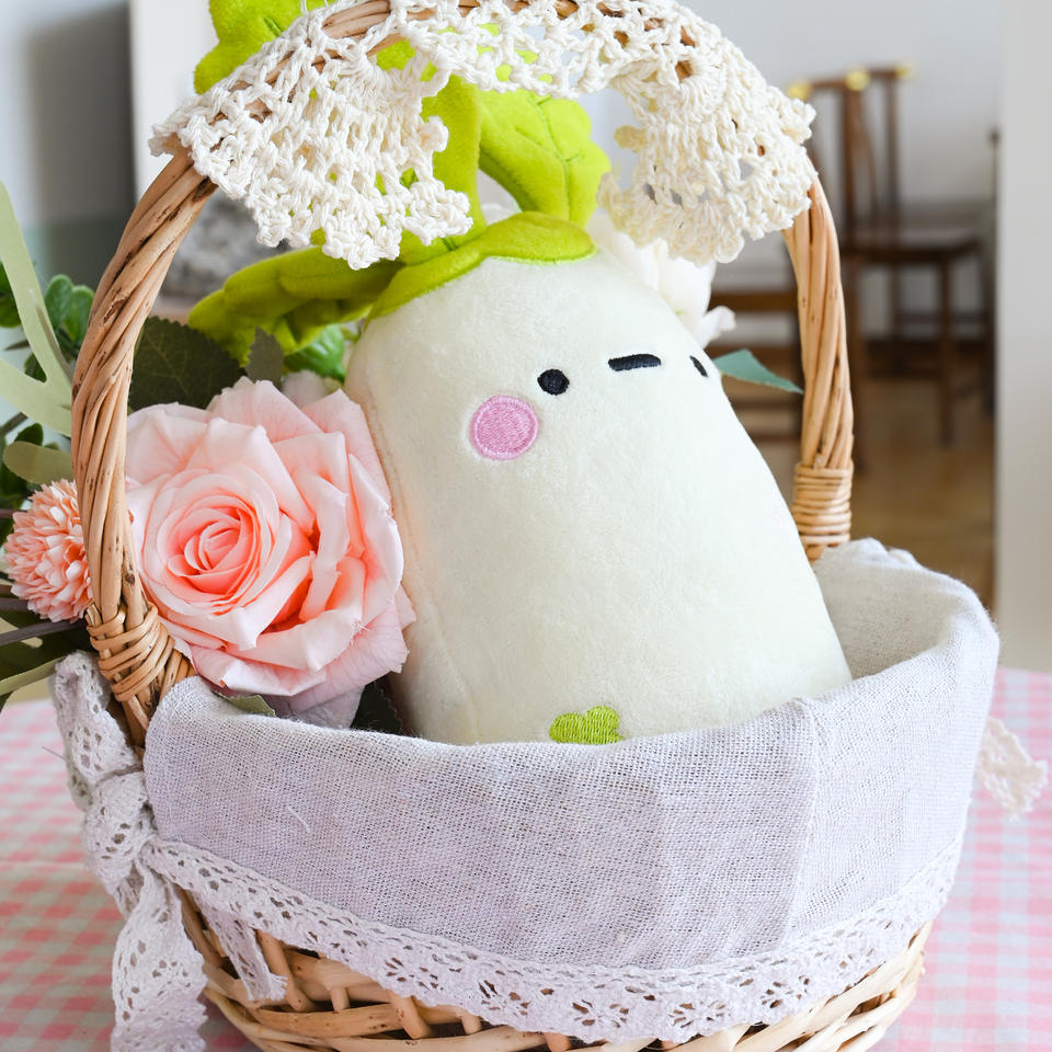 Jouets en peluche personnalisés en forme de fruits et légumes, adorable radis blanc gras en peluche, poupée lestée avec des billes, poupée en peluche très rembourrée avec des billes