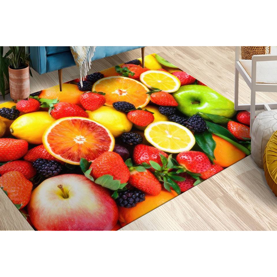 Tapis imprimé fruits : Tapis moderne pour cuisine et décoration intérieure, avec poils doux