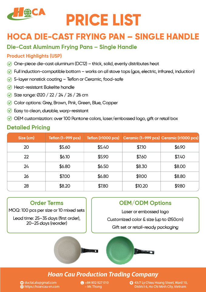 Poêle à frire multifonctionnelle, compatible gaz et induction, antiadhésive, personnalisable, écologique, fabriquée au Vietnam