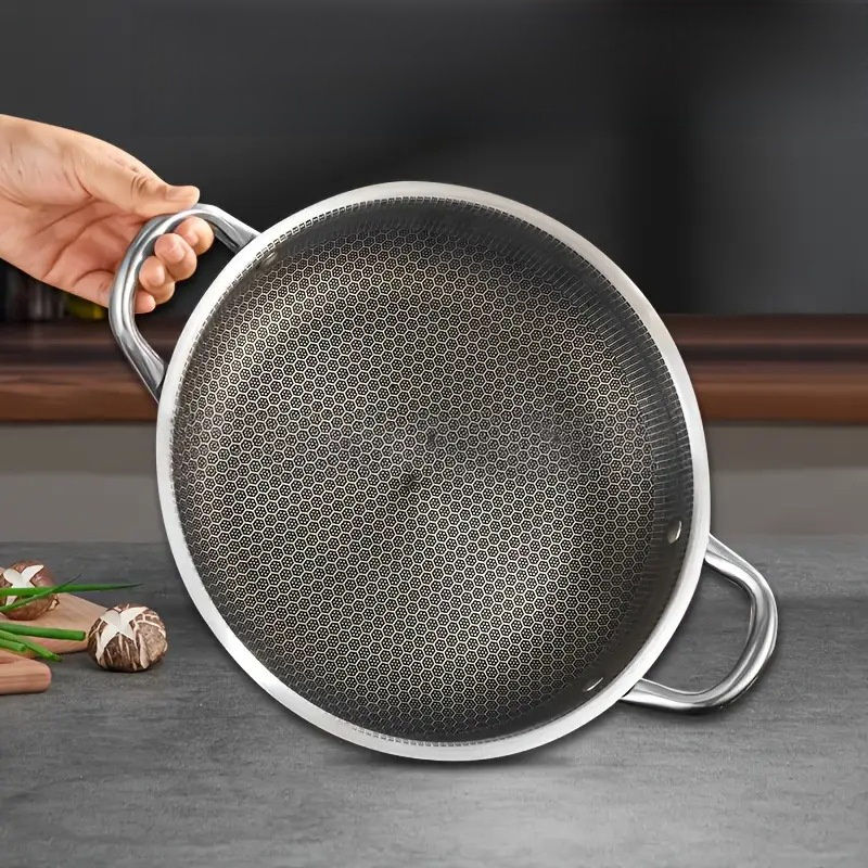 Poêle à frire de cuisine, poêle à paella, motif nid d'abeille, anti-rayures, en acier inoxydable, poêle à frire à induction