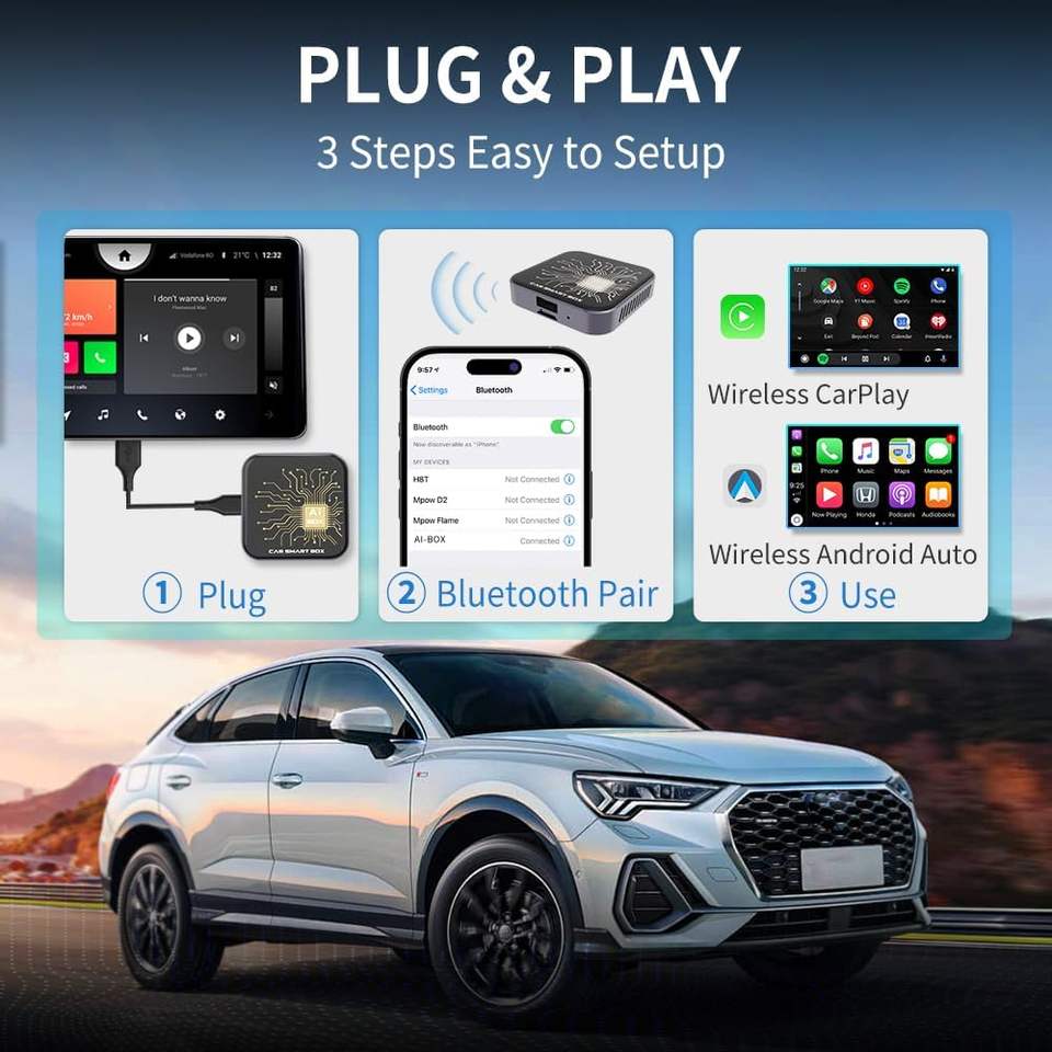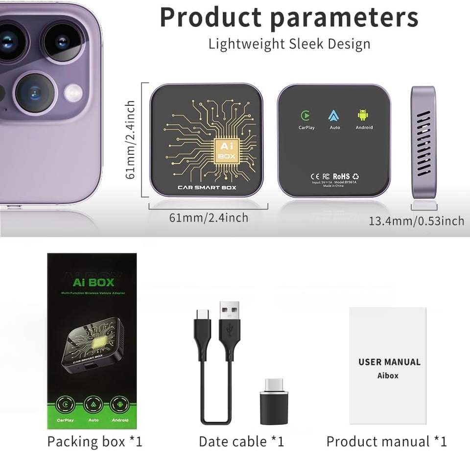Fuallwin BY961P 2-in-1 4+128G Smart Android 13 Ai Box Wireless CarPlay Dual Connection 5GHz WiFi Adapter Dongle USB Netflix