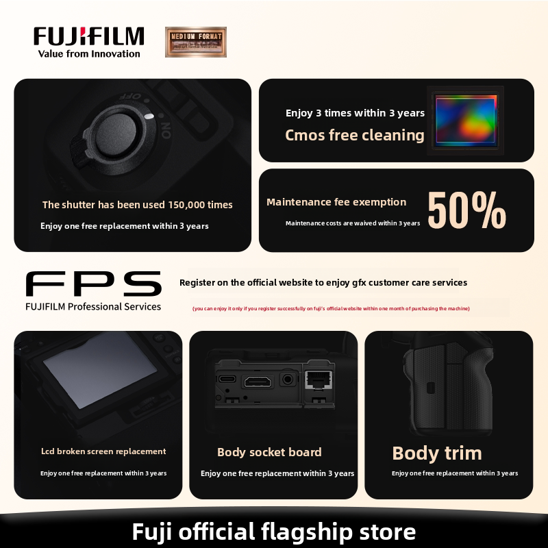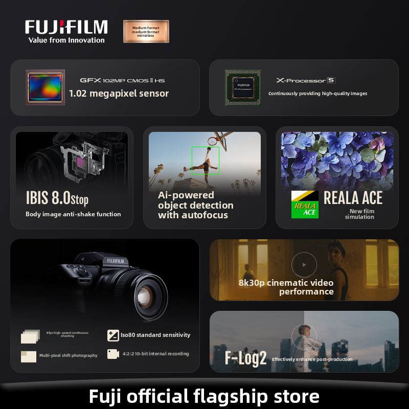 Appareil photo hybride moyen format Fuji GFX 100II avec capteur CMOS et prise en charge de la carte SD