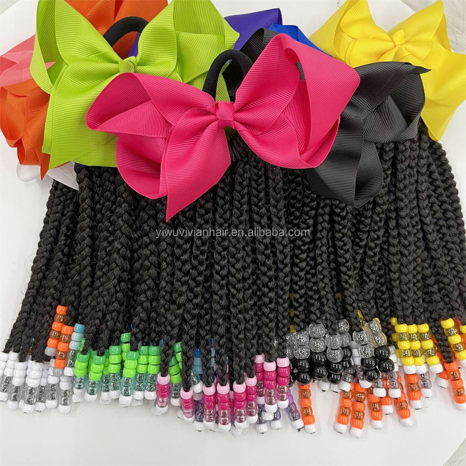 Queue de cheval tressée personnalisée Fujia avec perles et nœud papillon Dreadlocks africains personnalisés pour enfants filles