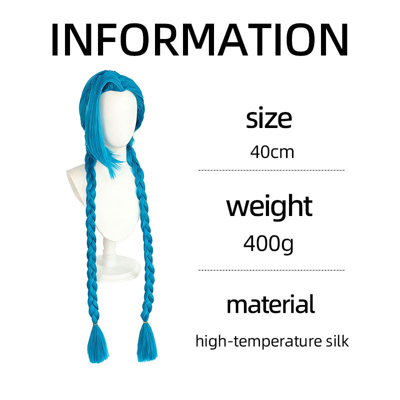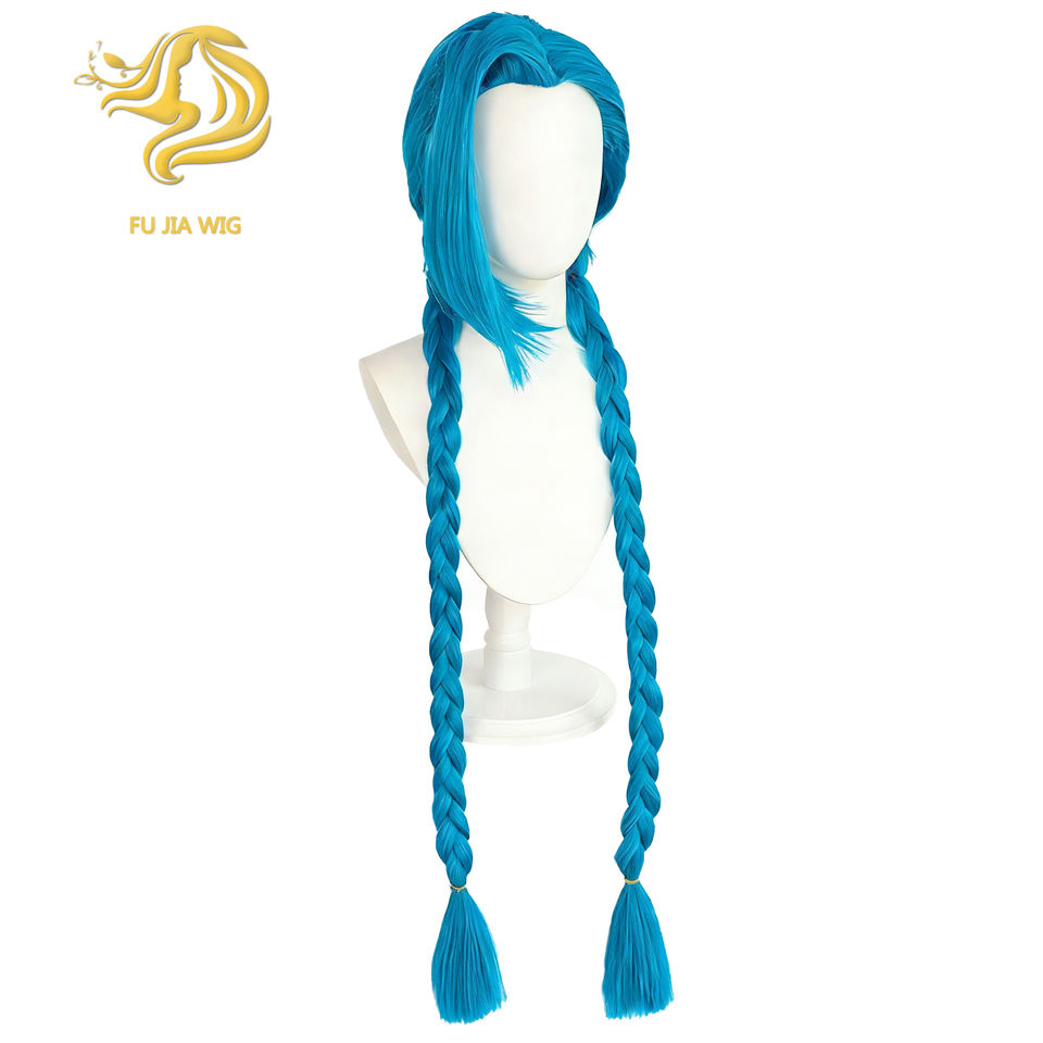 Fujia League Legends Arcane Jinx Cosplay Wig 120cm Long Blue Adjustable Heat Resistant High Temperature Fiber for LOL Arcane