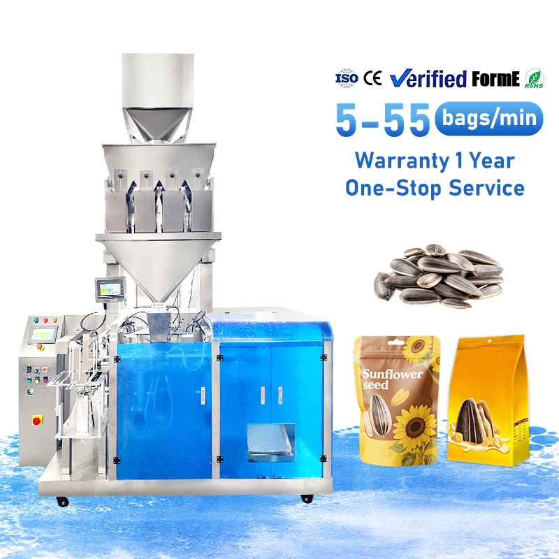 Machine de remplissage et de scellage entièrement automatique pour graines de tournesol, noix, snacks, emballage en sachets préformés