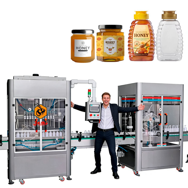 Ligne de production entièrement automatique pour le traitement du miel et du sirop, machine d'emballage de pots de miel, machine de remplissage, de bouchage et d'étiquetage de bouteilles de miel