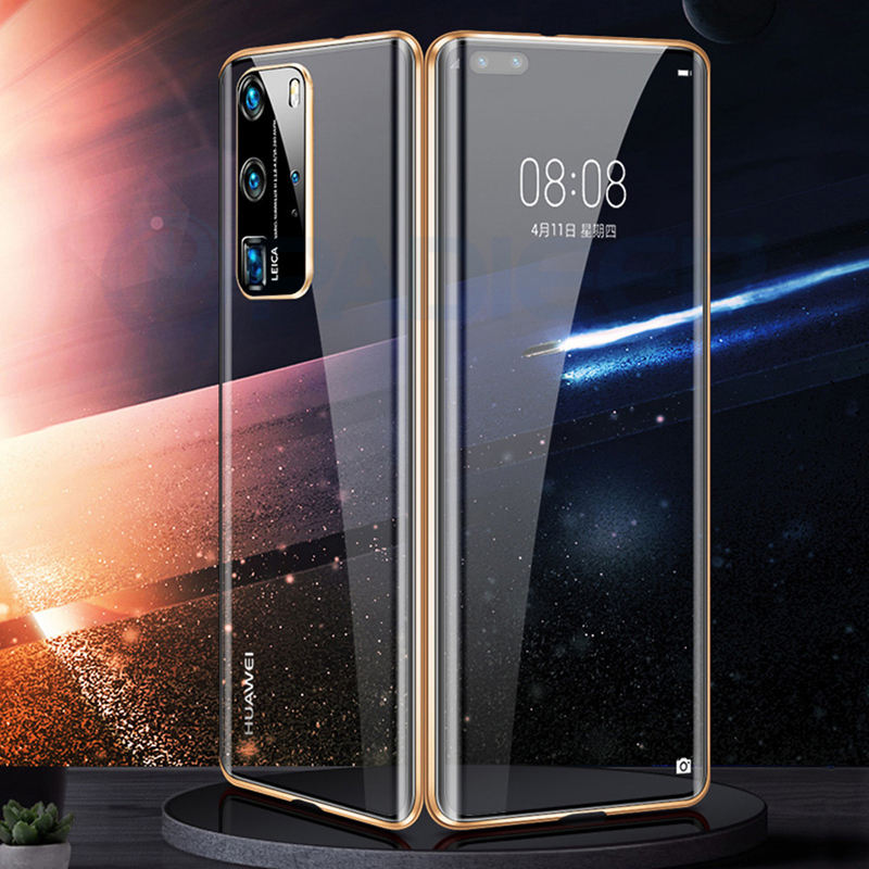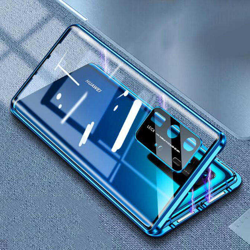Coque magnétique intégrale pour Huawei P40, couvercle avant et arrière en verre trempé, protecteur d'objectif de caméra intégré