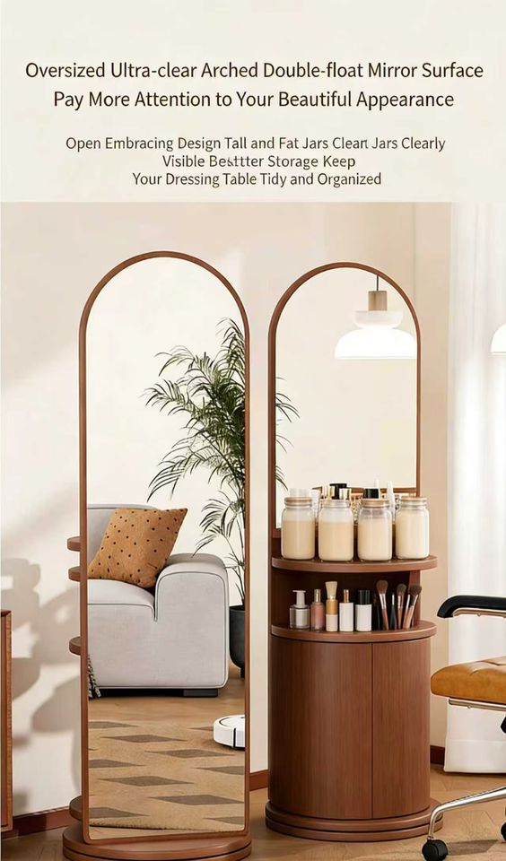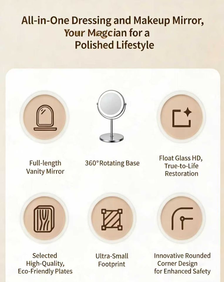 Miroir pleine longueur intégré pour coiffeuse domestique, miroir de maquillage rotatif haute définition pour chambre à coucher