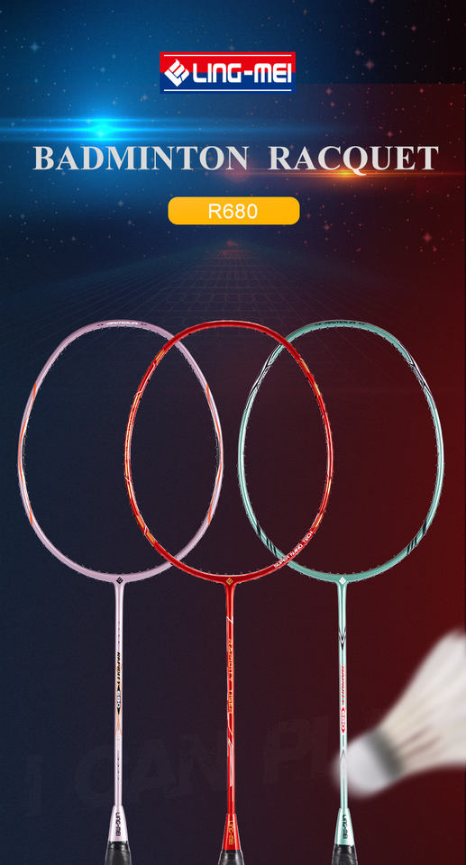 Raquette de badminton Lingmei R680 entièrement en fibre de carbone