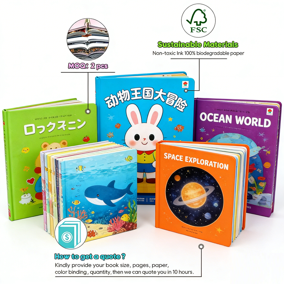 Impression de livres pop-up pour enfants personnalisés en couleur avec couverture rigide, papier offset et matériaux en carton