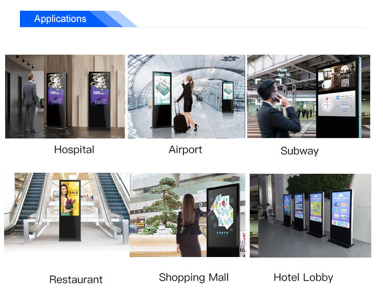 Utilisation:Publicité publier, L'aéroport, Ascenseur, Éducation, Affichage de plats, Hall d'exposition, Fournitures de Restaurant et D'hôtel, Détail Vendeur, Libre-service affaires, Center commercial, Métro, Wayfinding, Bienvenue affichage