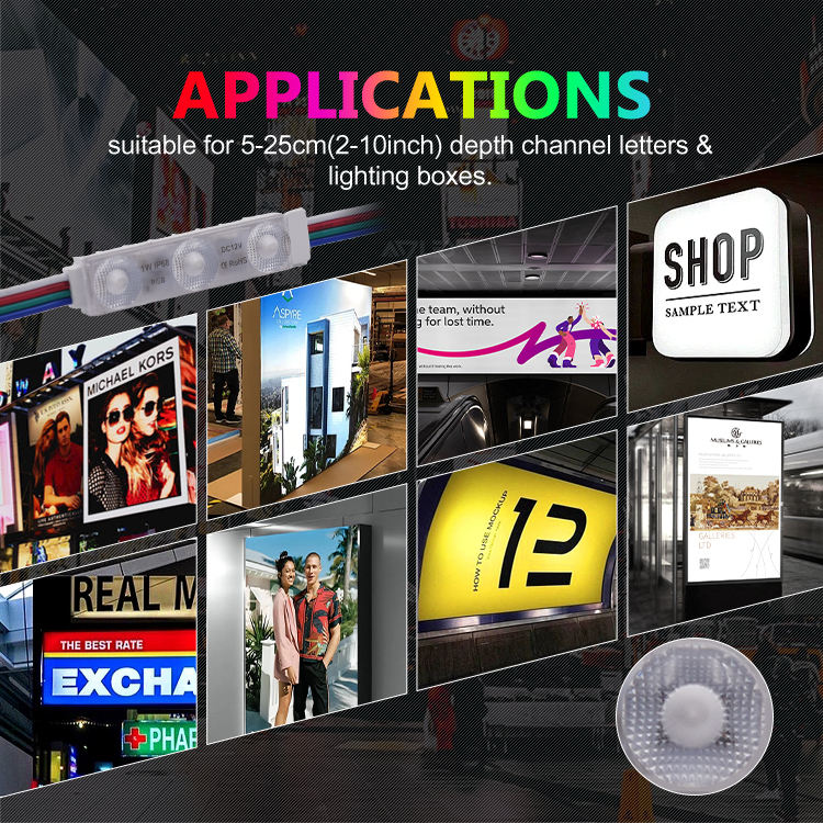 Module LED couleur pleine, étanche pour extérieur, RGB, 3 lentilles, 2835 LED, SMD 0.72W, 12V, pour enseignes LED, boîte à lumière publicitaire
