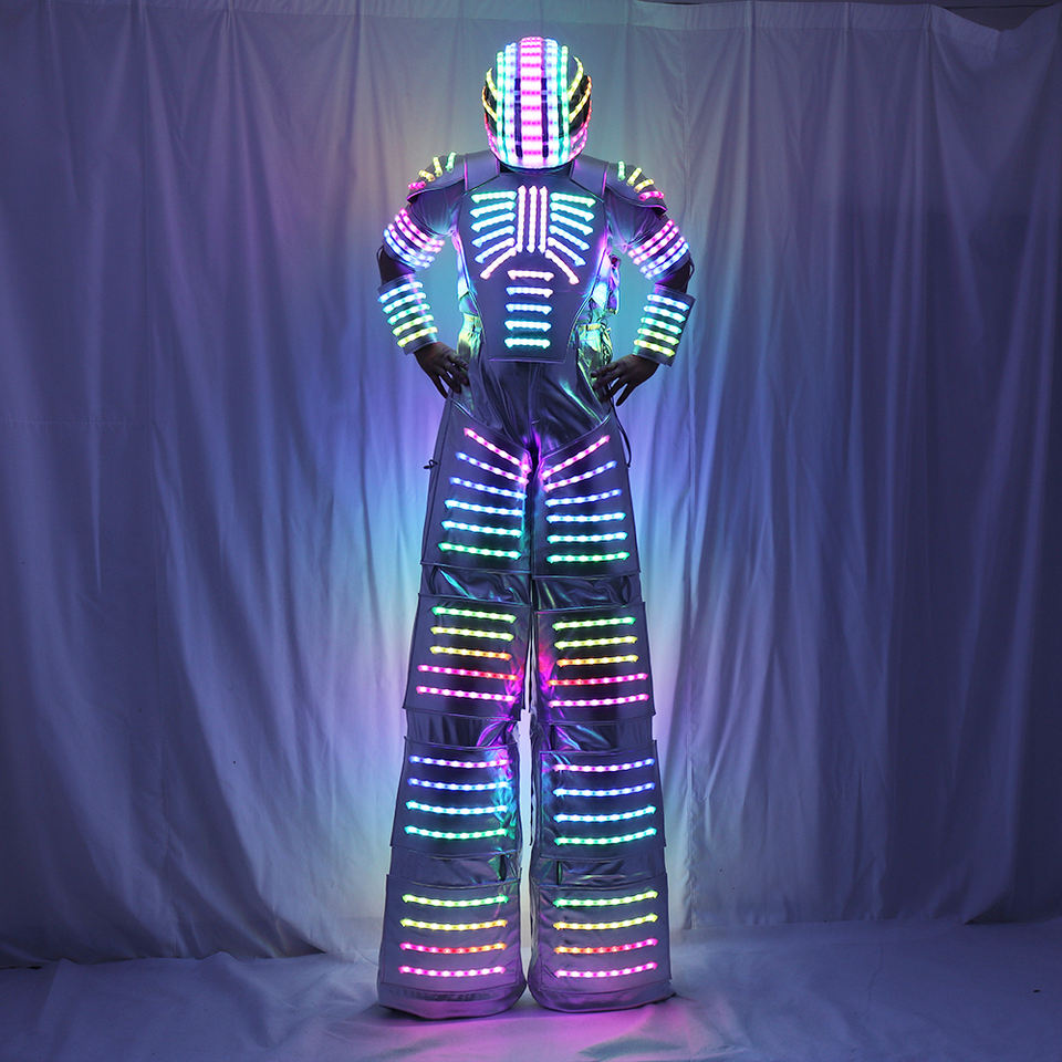 Costume de robot LED Pixel couleur David Guetta Laser Jacket Costume d'Échasses de Ranger lumineux pour Performance Wear