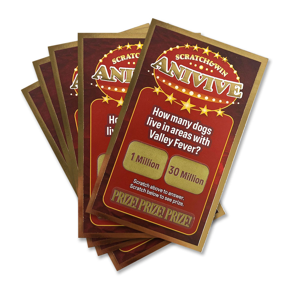 Impression en couleur, cartes à gratter personnalisées, cartes de billet de loterie, cartes à gagner, Code QR Scannable