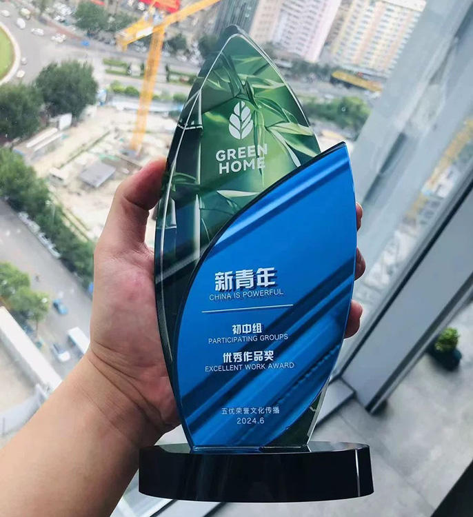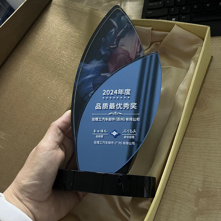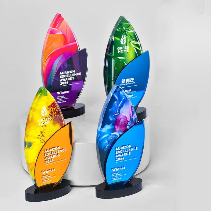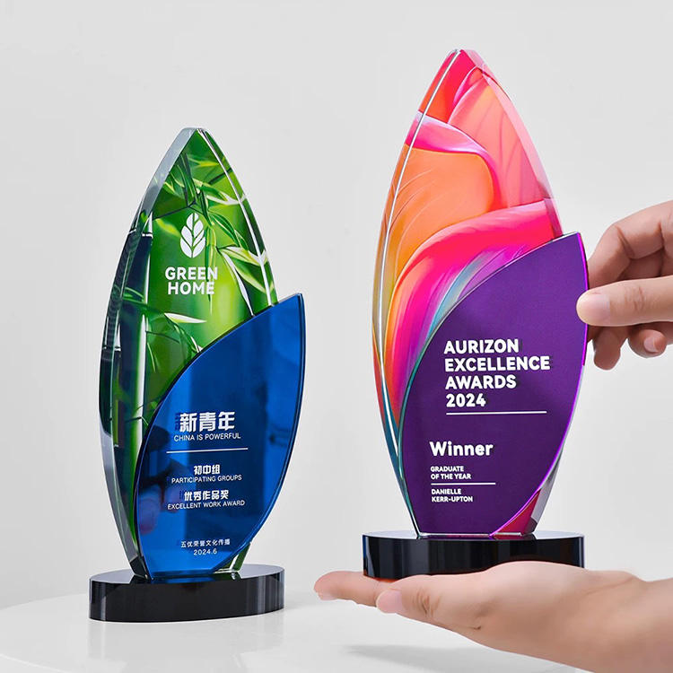 Nom de l'article:Trophée en verre cristal avec impression couleur intégrale et finition miroir.