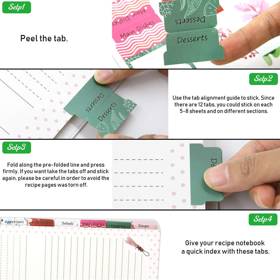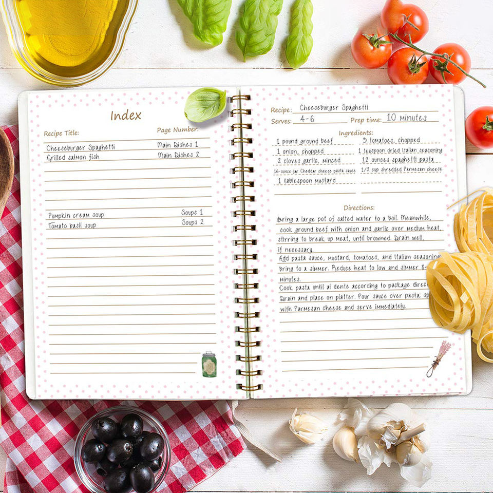 Livre de recettes d'impression en couleur Vos propres recettes de famille Livre de cuisine vierge avec onglets Autocollants Idées cadeaux pour femme maman femmes