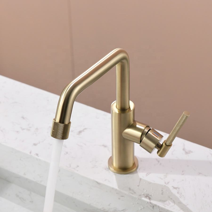 Robinet de lavabo industriel en laiton doré brossé, entièrement en cuivre, robinet de toilette, mélangeur de salle de bain