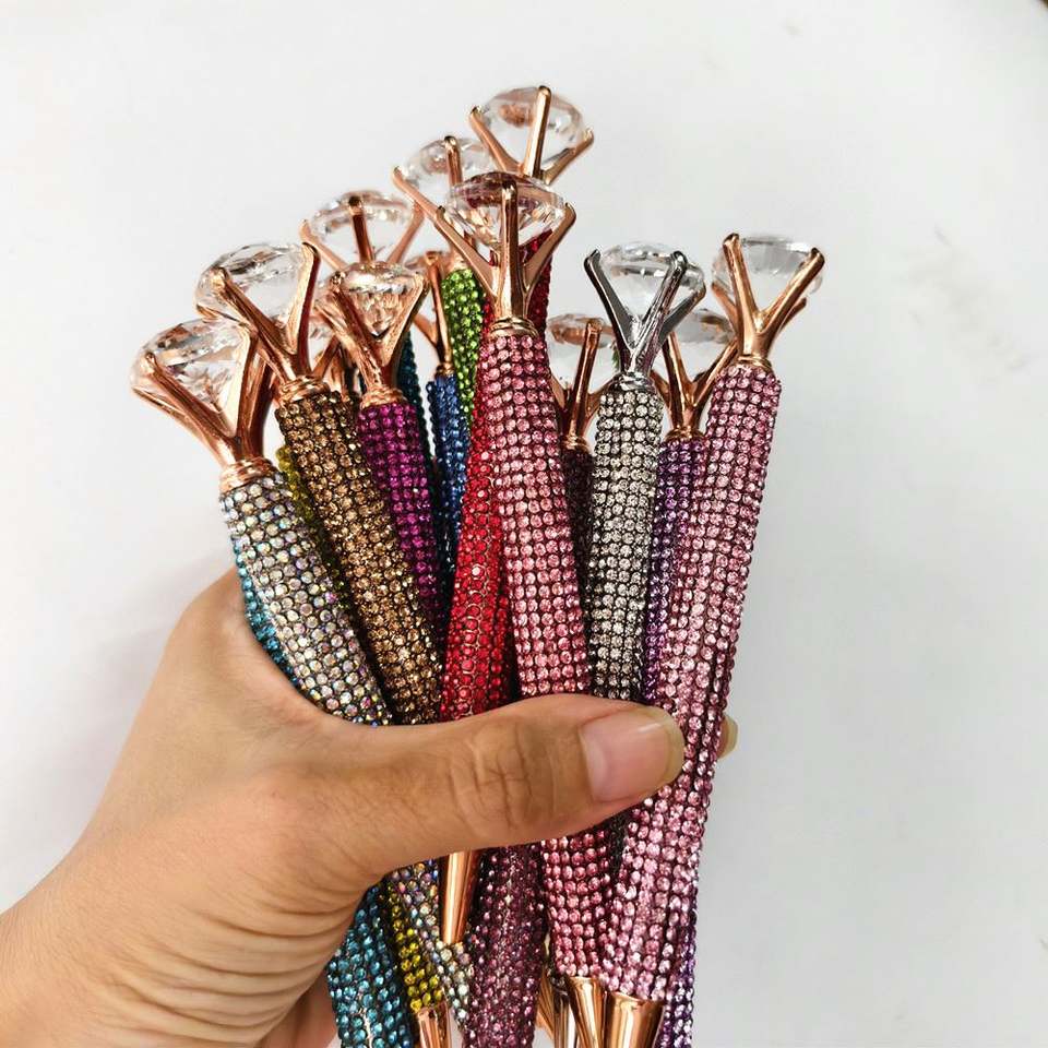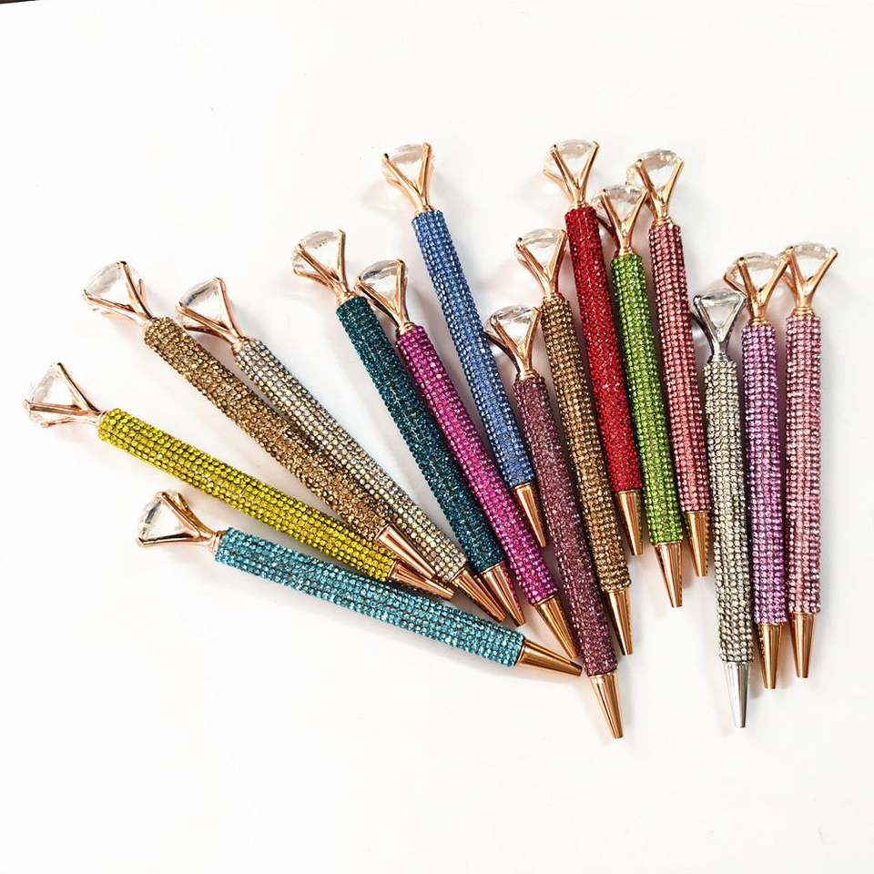 Stylo bille en métal à couverture intégrale orné de grands diamants, avec cristal rotatif, magnifique cadeau pour fille