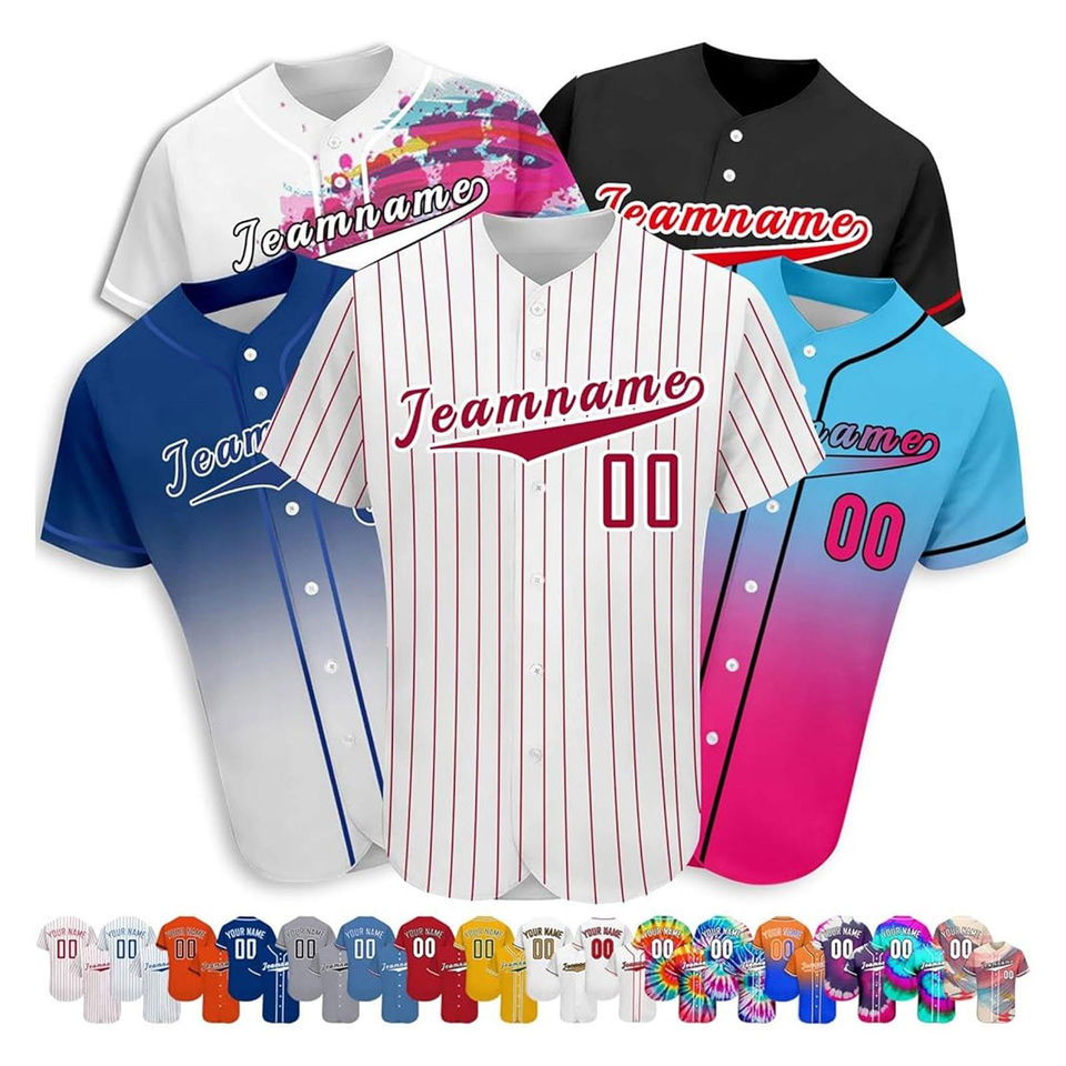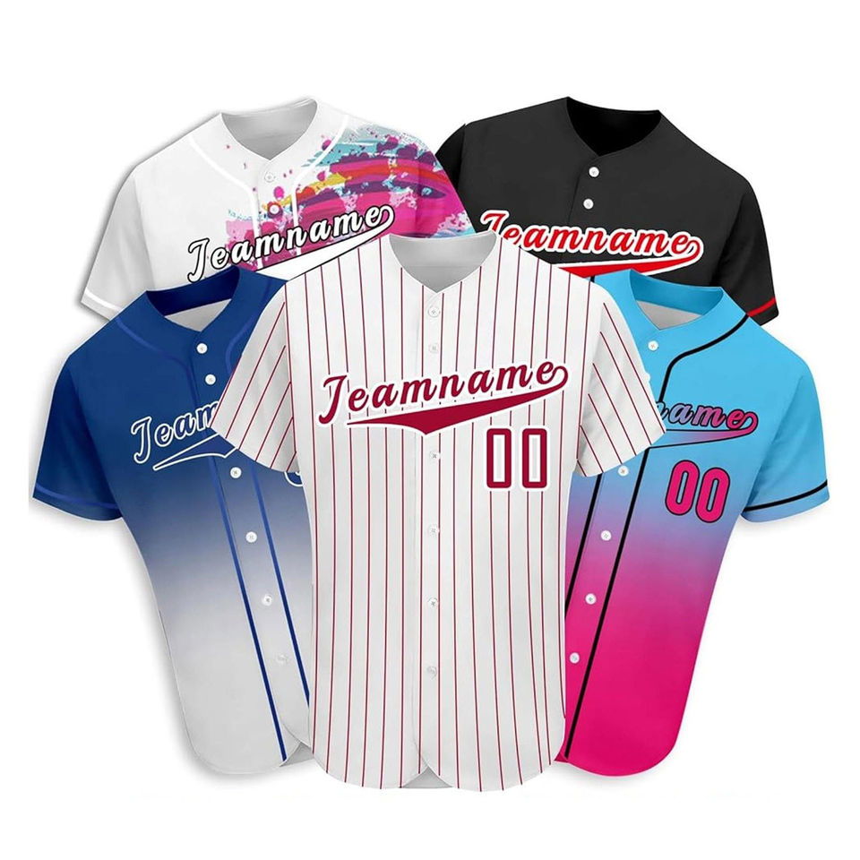 Maillot de baseball entièrement personnalisé, t-shirt, broderie 3D, couleurs personnalisées, logo, tissu 100% polyester, respirant, séchage rapide, ensembles