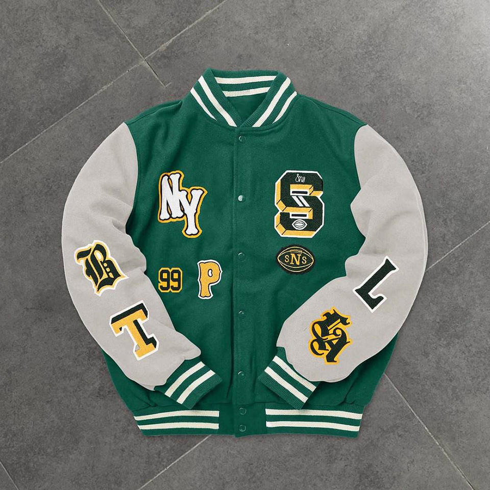 Veste Letterman entièrement personnalisable, veste universitaire vintage à boutons classiques de qualité supérieure avec logo personnalisé