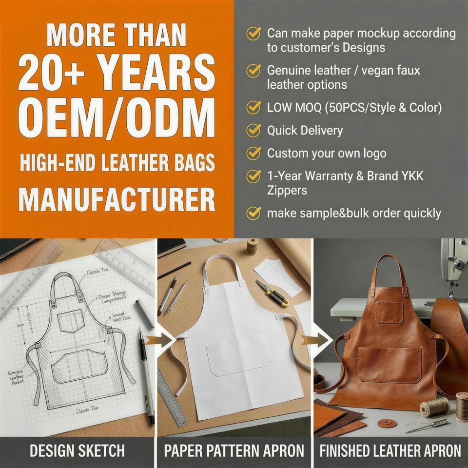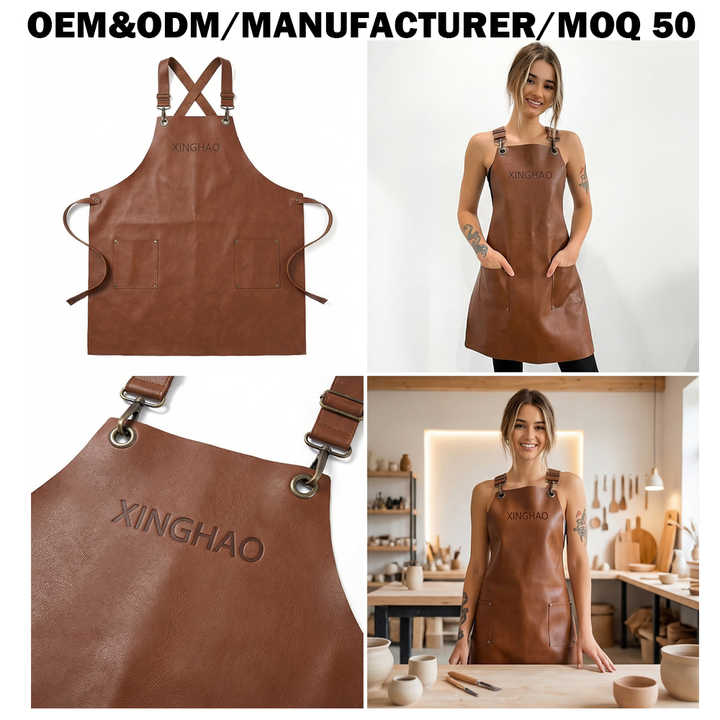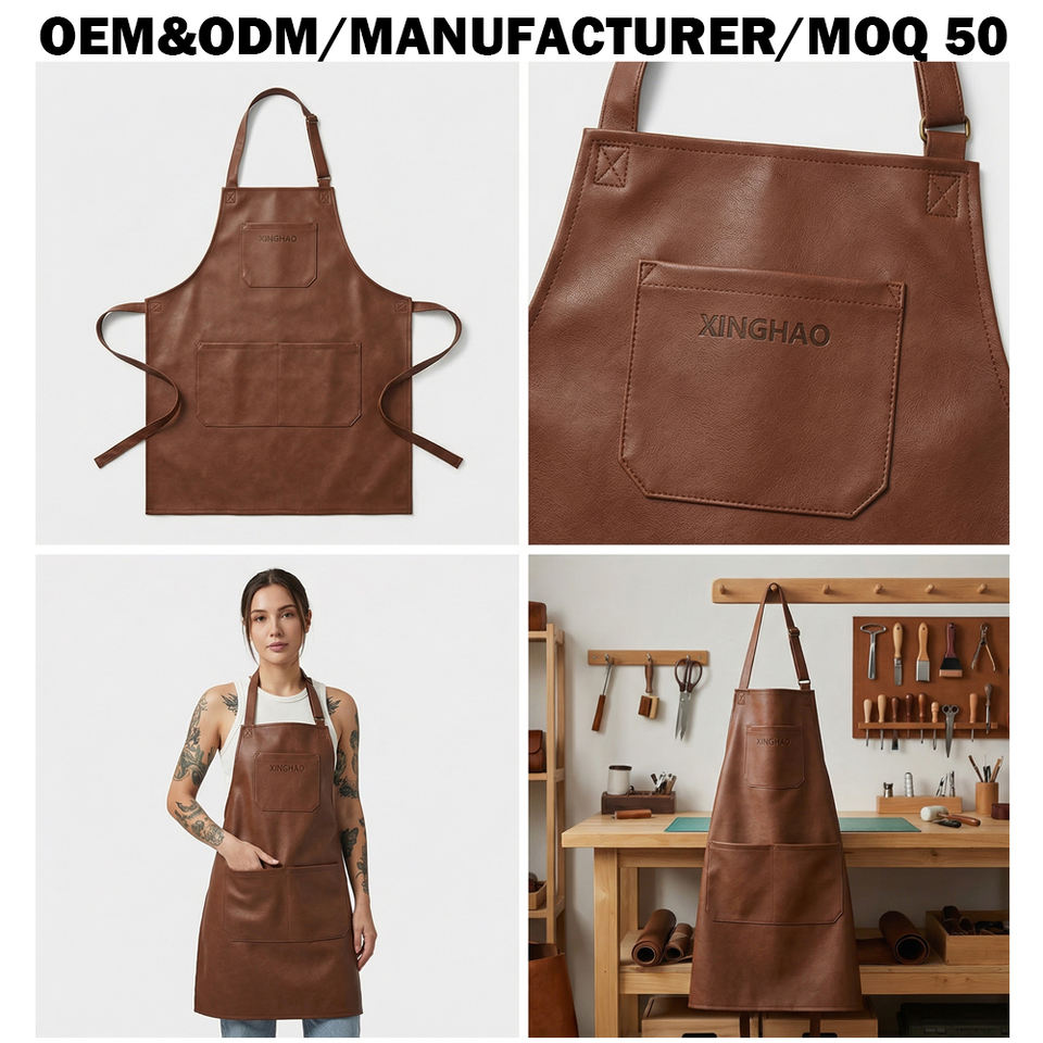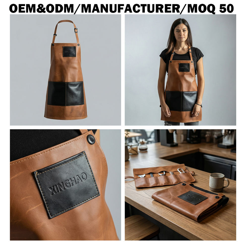Tablier en cuir PU végétalien résistant à l'eau et aux taches, entièrement personnalisable avec logo OEM et marque privée, pour restaurants et cafés