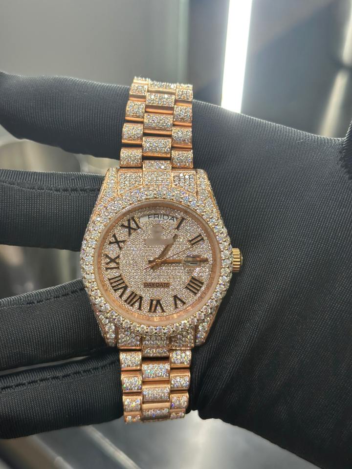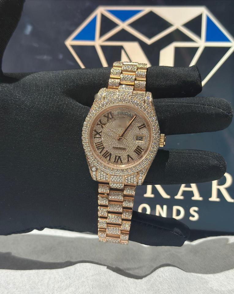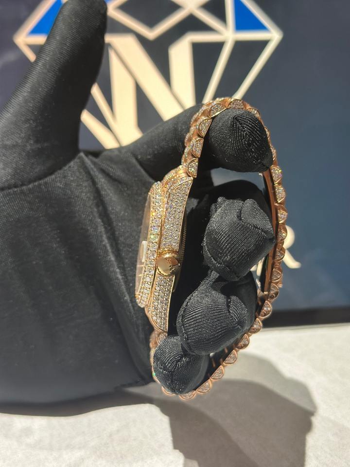 Montre plaquée argent entièrement sertie de diamants, montre-bracelet à quartz pour hommes et femmes, cadran scintillant, montre en acier inoxydable entièrement sertie de diamants pour hommes