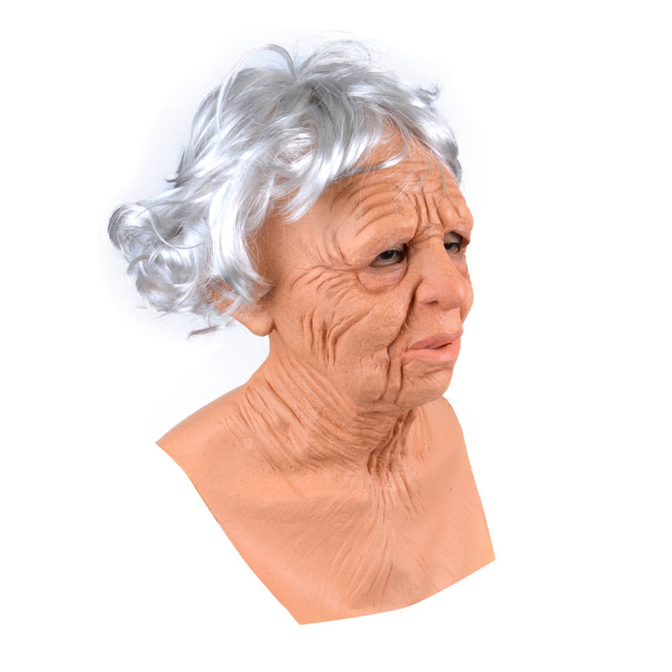 Product Name:White hair Grandma mask latex With neck Party props Latex mask